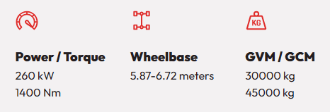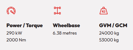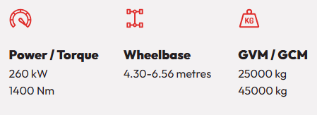- With a range of Euro 6 powertrains spanning from 360hp/1400Nm up to 510hp/2500Nm of torque depending on model chosen.